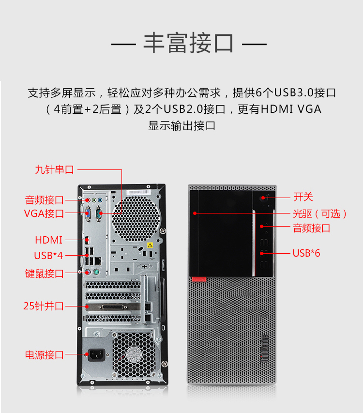 联想Lenovo E96X 台式机电脑租赁(G4900/8G/256G SSD/核显/联想T2055 19.5英寸显示器)