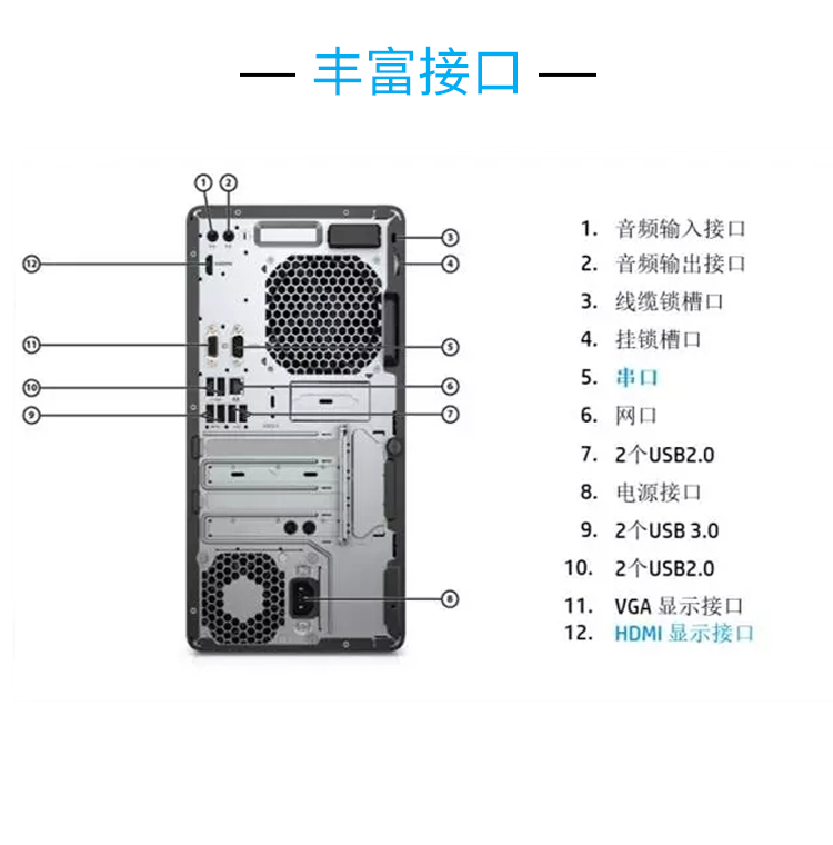 电源接口、2*P/S 2接口、RJ-45网络端口 |