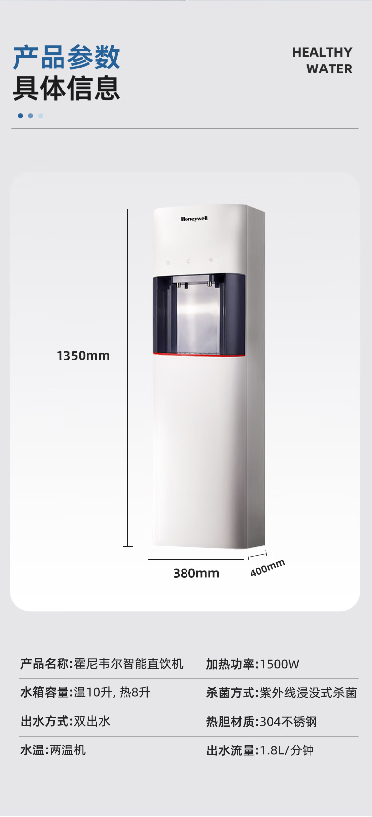 • 霍尼韦尔SYM-FL200反渗透直饮机 净水机租赁(SYM-FL系列 200G温10L/热8L 304不锈钢水箱 loT物联网 两温机)