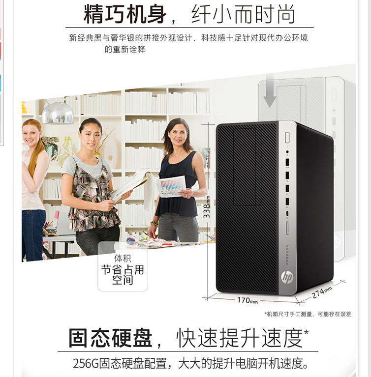 惠普Hp 288G6 台式机电脑租赁(i3-10100/8G/1T+256G SSD/核显/戴尔显示器 20英寸)
