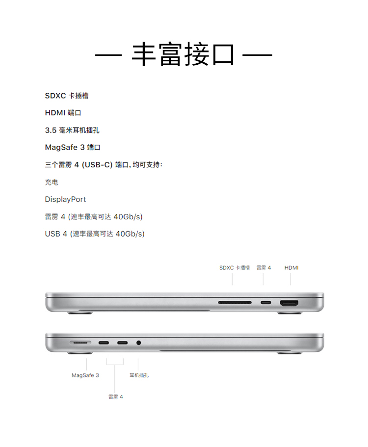 MagSafe 3 端口*1,SDXC 卡插槽*1,雷雳 4 (USB-C) 端口*3 |