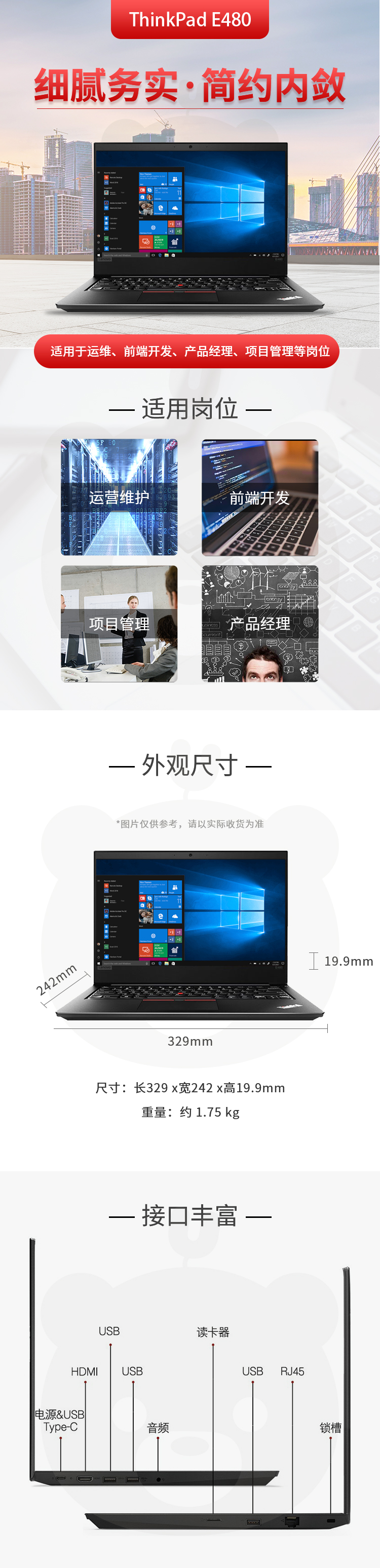 ThinkPad E480 14英寸笔记本电脑租赁(i3-7020U/8G/256G SSD/核显/14英寸/1366x768/黑色)