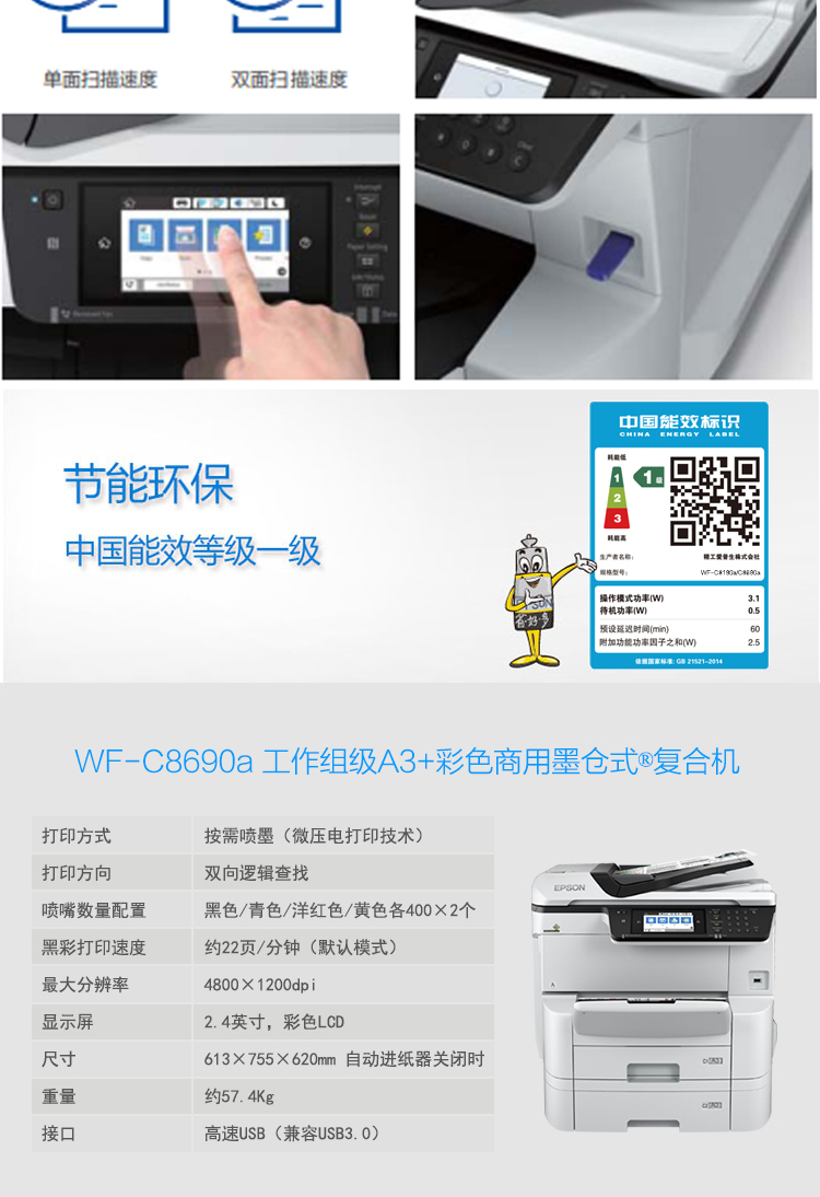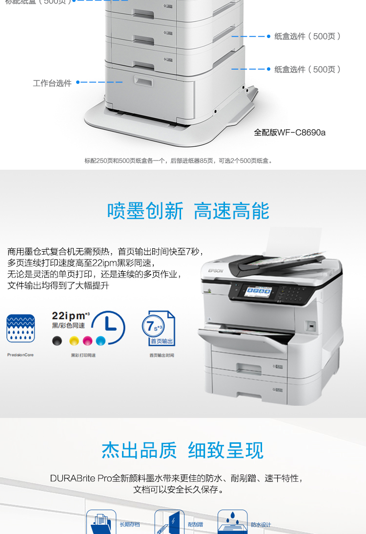 爱普生 WF-C8690a 彩色喷墨打印机 文印产品租赁(含每月2000张黑白打印量,200张彩色打印量,超印部分黑白0.04元/张,彩色0.4元/张)