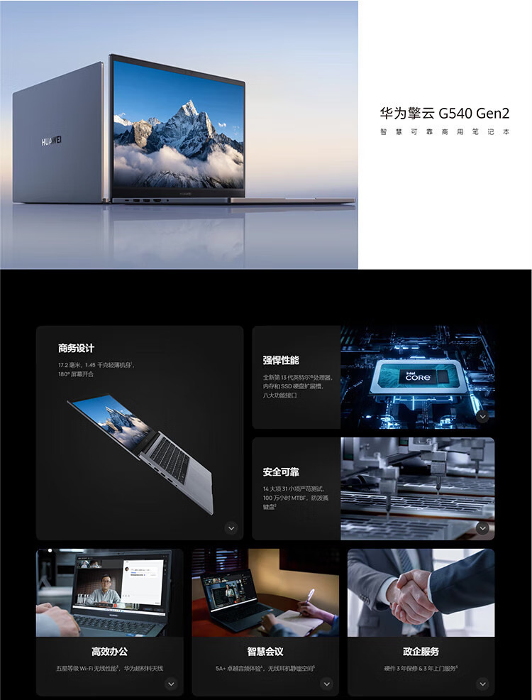 华为HUAWEI 擎云G540 Gen2 14英寸笔记本电脑租赁(i5-1340P/16G/1T SSD/核显/14英寸/1920x1080/深空灰)