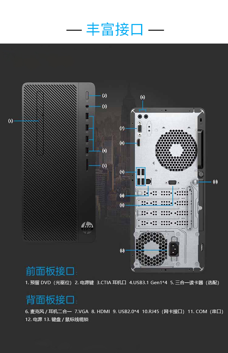 惠普HP 288G5 单主机电脑租赁(i5-9500/16G/1T+256G SSD/GTX1650 4G)