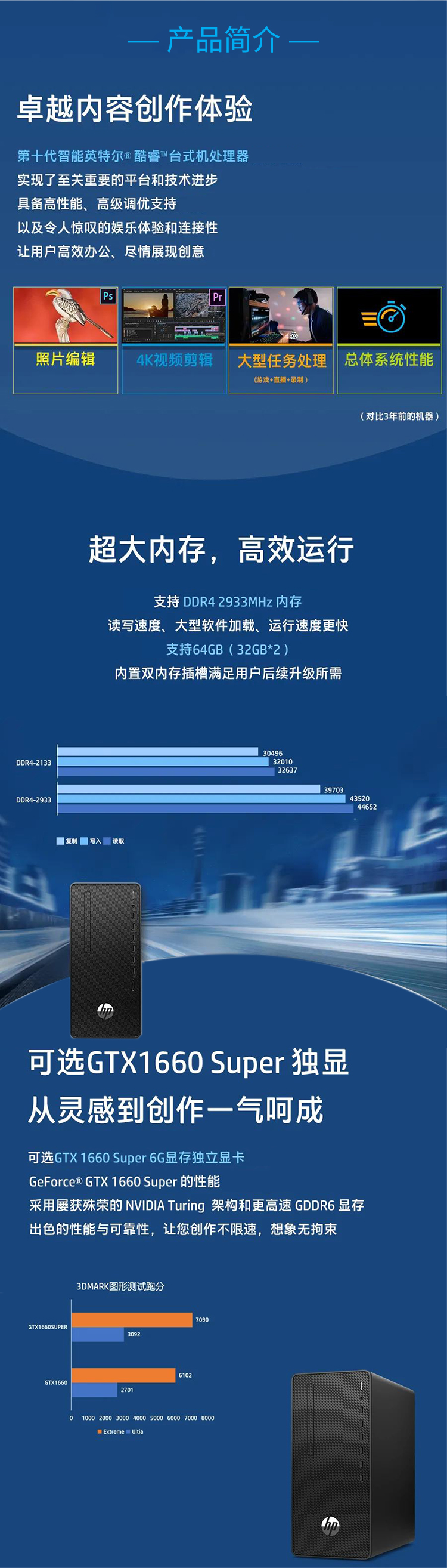 惠普HP 288G6 台式机电脑租赁(i5-10500/32G/1T+256G SSD/GTX1650 4G/联想P24I 23.8英寸显示器)