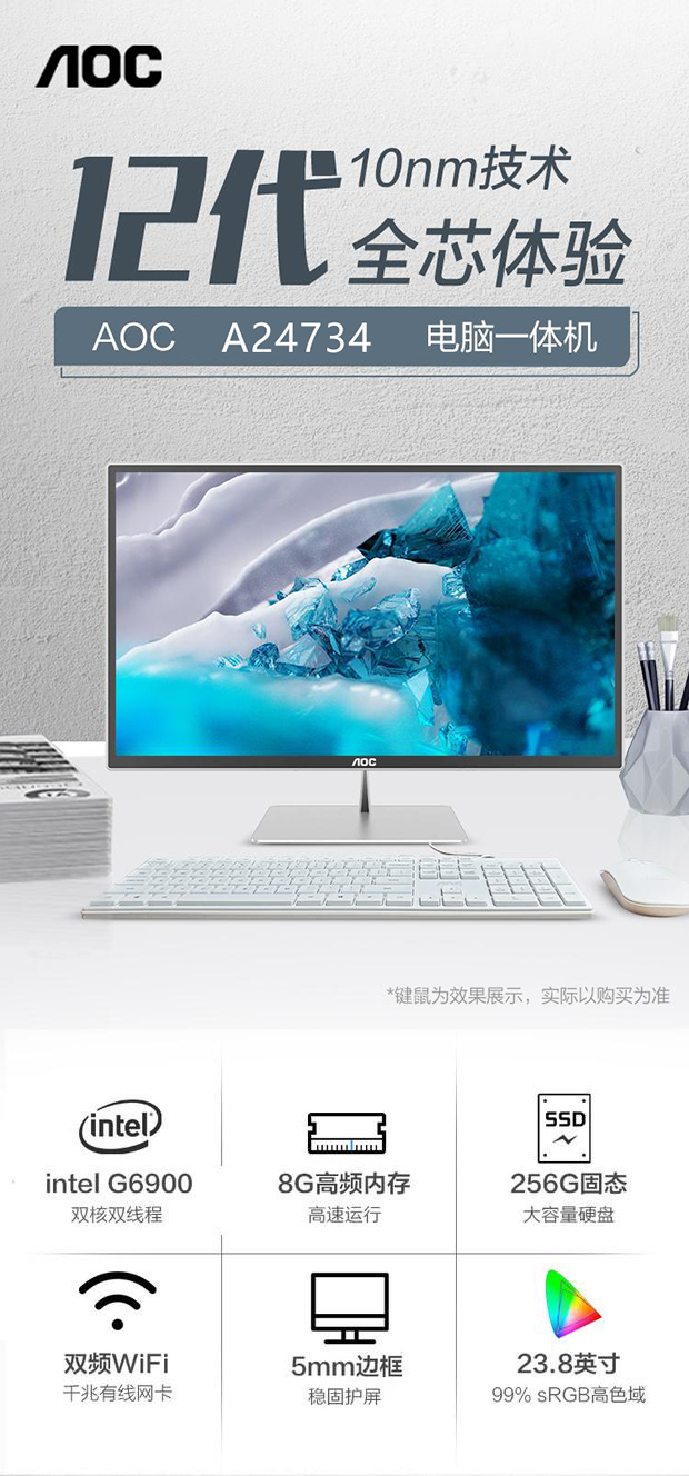 冠捷 A24734 23.8英寸 一体机电脑租赁(G6900/16G/256G SSD/核显/23.8英寸/1920x1080/白色)