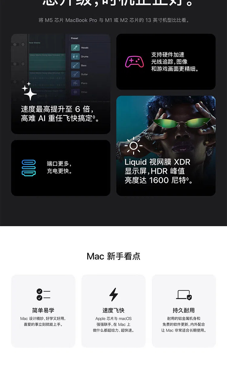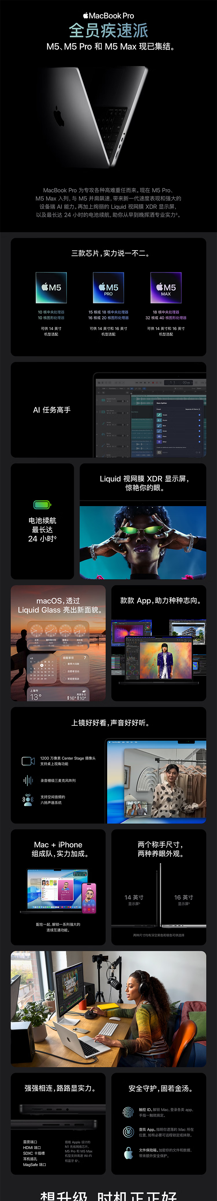 | CPU型号 | M5 PRO 18核中央处理器 、16核神经网络引擎 |